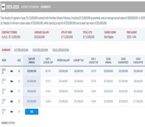 北京時間2月14日晚,湖媒Laker Tom也透露,在2026年休賽期湖人隊有引進三年1.12億合同的墨菲的打算。