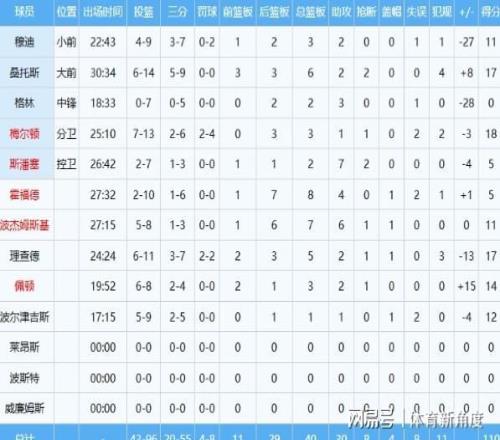 凱爾特人隊這邊,球員表現(xiàn)參差不齊。追夢格林的表現(xiàn)著實令人大跌眼鏡,他的運動戰(zhàn)7次出手全部偏出,并且沒有獲得任何罰球機會,得分欄上零分,僅僅收獲了2個籃板和3次助攻。更糟糕的是,他的正負值低至 -28,位列全場最低。交易截止日已然過去,格林卻依舊狀態(tài)低迷,不禁讓人心生疑問:是他沒有全身心投入比賽,還是年滿35歲的他,競技水平出現(xiàn)了斷崖式下滑?