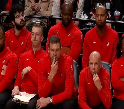 不過小楊繼續(xù)拼搶,扣籃不中后,拿到進(jìn)攻籃板,再次上籃,這次裁判給了打手犯規(guī)。小楊上罰球線,罕見兩罰不中,而緊接著下一個回合中,小楊在進(jìn)攻中造成對手犯規(guī),再次獲得兩次罰球,但遺憾的是,再次兩罰全失。也就是說,短短1分鐘內(nèi),小楊扣籃扣飛+4罰全丟,鏡頭給了開拓者教練組,7個助教全都是目瞪口呆,斯普內(nèi)特直接閉眼,沒眼看?。?/p>