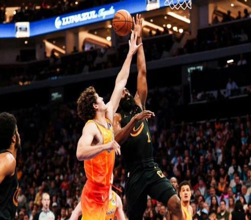 本場比賽,雙方在首發(fā)陣容上面,騎士這邊派出的是,哈登,米切爾,梅里爾,韋德,阿倫。黃蜂這邊派出的是,鮑爾,克尼普爾,米勒,西恩詹姆斯和瑞安。首節(jié)比賽開始,騎士率先拿到球權(quán),阿倫中距離干拔跳投得手,打進(jìn)本場比賽首個進(jìn)球,米勒大號三分發(fā)炮也為黃蜂開張,阿倫籃下舉火燒天,單臂怒扣,米勒又一個追身三分球空心入網(wǎng),梅里爾旋風(fēng)沖刺飛身拋投挑落兩分,阿倫虛晃一槍,籃下強起放籃繼續(xù)命中,克尼普爾定點外線開火空心入網(wǎng),哈登的側(cè)翼大號三分球也一箭穿心。首節(jié)比賽前半程,兩隊進(jìn)攻效率都不錯,你追我趕交替領(lǐng)先。