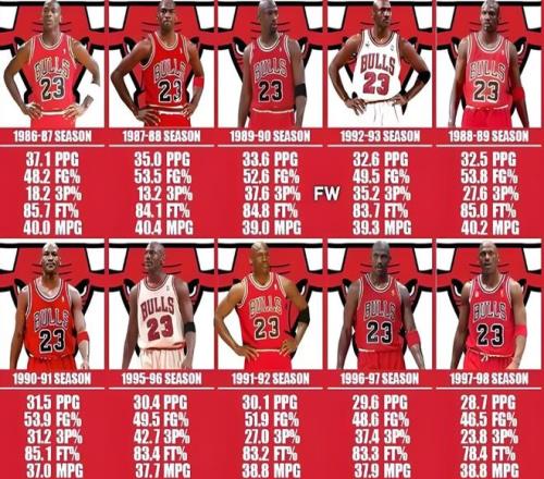第五,邁克爾·喬丹的10次得分王,得分統(tǒng)治力的終極體現(xiàn)。7連莊+復(fù)出再拿3次,這種中途退役復(fù)出還能統(tǒng)治得分榜的能力,現(xiàn)如今真的無人能比?,F(xiàn)役杜蘭特最多才4次,如今得分高手遍地走,當家球星擁有無限開火權(quán)后,場均25+一抓一大把,得分王最后拼的就是小數(shù)點,10次得分王,注定后無來者的存在。