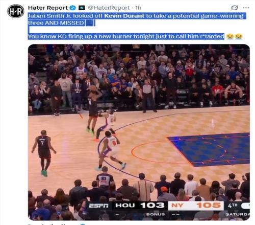 恥辱火箭終場金身烏度卡凱文杜蘭特紐約尼克斯隊