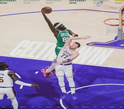 湖人上半場三分球15中7,三分命中率高達46.7%。不過湖人兩分球只有28中11,兩分命中率39.3%,凱爾特人兩分球命中率51.4%。東契奇上半場14中6拿到18分2助攻,里夫斯7中2得到9分2籃板,詹姆斯8中3拿到6分4助攻。