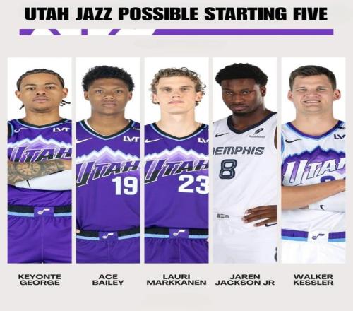 除了這三位,爵士的后場上還有基揚特喬治(本賽季場均23.8分)、科利爾(本賽季場均10.8分7.3助攻)、森薩博(三年級,場均12.7分)、埃斯貝利(19歲新秀,場均11.7分)以及一個潛在的2026年首輪前八順位(選秀大年)。