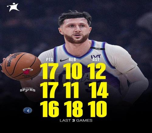 其中一月底,努爾基奇還曾連續(xù)三場拿下三雙: