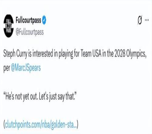 北京時(shí)間2月24日,據(jù)NBA名記Spears在節(jié)目上報(bào)道,庫(kù)里仍有興趣代表美國(guó)男籃出戰(zhàn)2028年洛杉磯奧運(yùn)會(huì)?!八沟俜?...