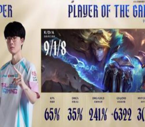 電競體育2月25報(bào)道 LPL第一賽段季后賽BLG擊敗NIP拿下賽點(diǎn),Viper EZ完美表現(xiàn)打出9-1-8的華麗戰(zhàn)績斬獲本局MVP。