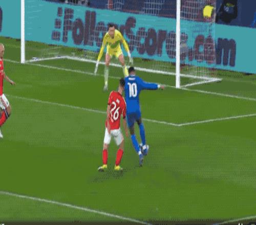 第9分鐘,姆巴佩面對三人防守,沒有任何預(yù)兆,突然起腳射門,造成了切魯賓的脫手。