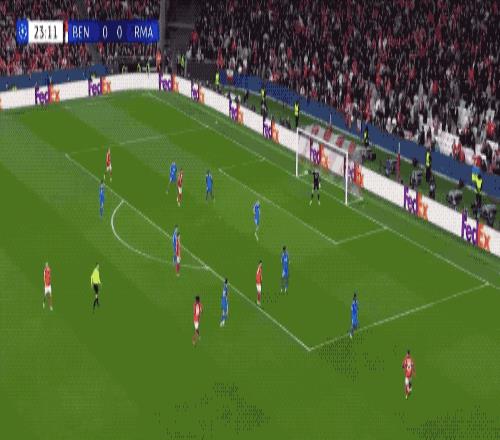 上半場的后半段,皇馬開啟了狂轟濫炸模式,本菲卡逐漸陷入被動,門前險象環(huán)生,切魯賓成為場上最忙碌的球員。