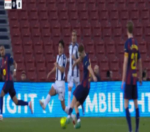 第32分鐘,坎塞洛傳中,德容后插上墊射破門,巴薩2-0領(lǐng)先萊萬特!