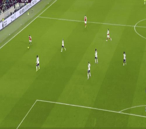 第32分鐘,薩卡晃過薩爾后傳中,埃澤停球不太利索,但迅速凌空抽射,阿森納取得領先。