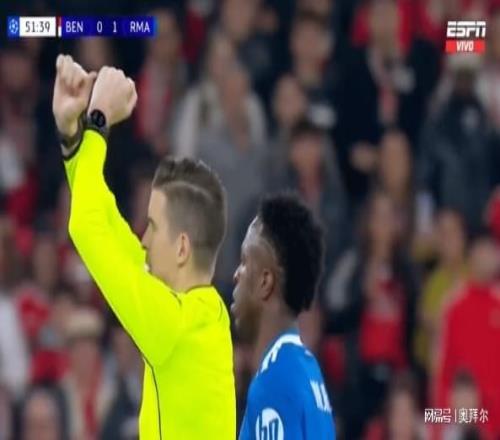 當雙方球員回到各自半場準備開球時,維尼修斯與普雷斯蒂安尼發(fā)生口角,隨即跑向主裁判,表示普雷斯蒂安尼辱罵了自己,主裁判隨即雙手做出交叉手勢,啟動種族歧視應對程序。