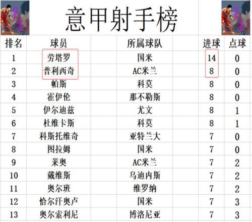 射手榜方面,勞塔羅14球繼續(xù)領(lǐng)跑,普利西奇今天傷愈復(fù)出,只不過替補(bǔ)登場未能進(jìn)球,還是和帕斯,霍伊倫,伊爾迪茲,杜維卡斯等人8球并列第2。