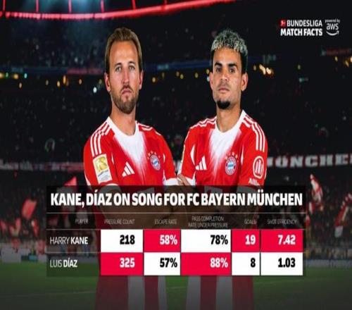 而今年1月9日是,AWS又強(qiáng)調(diào)指出:談到壓力,這不僅關(guān)乎控球,更體現(xiàn)了在比賽中能否保持頭腦清醒。壓力下傳球成功率衡量球員在防守壓力下成功將球傳給隊(duì)友的概率。凱恩在承受壓力時(shí)的傳球成功率為78%,但迪亞斯以88%的數(shù)據(jù)超過了他,展現(xiàn)了即使在最棘手的時(shí)刻也有驚人的準(zhǔn)確性。衡量處理壓力的關(guān)鍵指標(biāo)是擺脫率,它顯示球員在對手施壓時(shí)能夠擺脫防守的概率。凱恩和迪亞斯分別承受了218次和325次壓力。