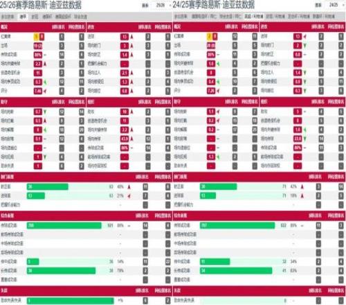 對陣霍芬海姆的比賽只是迪亞斯極致效率淋漓盡致的一次展現(xiàn):單場5次射門4次射正,10次過人7次成功,傳球成功率高達(dá)94.7%,而帽子戲法加兩造墊也讓其單場參與進(jìn)球數(shù)追平拜仁隊(duì)史邊鋒紀(jì)錄。而將時(shí)間線拉至整個(gè)2025-26賽季,迪亞斯數(shù)據(jù)升級后的效率會更加明顯。