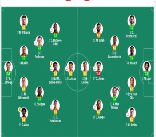 英超利物浦哈欽森薩拉赫安德森戈麥斯諾丁漢森林麥卡利斯特維吉爾·范迪克