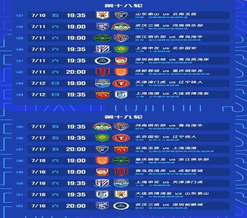 世界杯期間中超賽程:海港、成都、山東均1主3客,國安迎魔鬼賽程