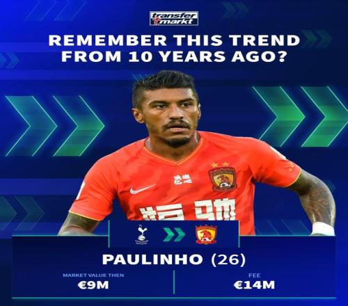 保利尼奧(熱刺→廣州恒大(已解散) 身價900萬歐 轉(zhuǎn)會費1400萬歐)