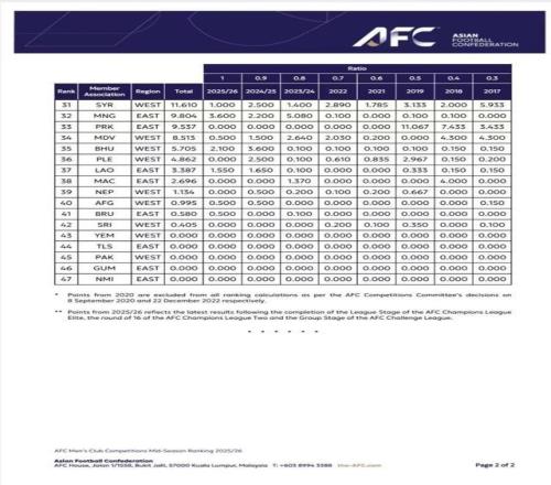 亞足聯(lián)公布新版男子俱樂(lè)部賽事排名榜
